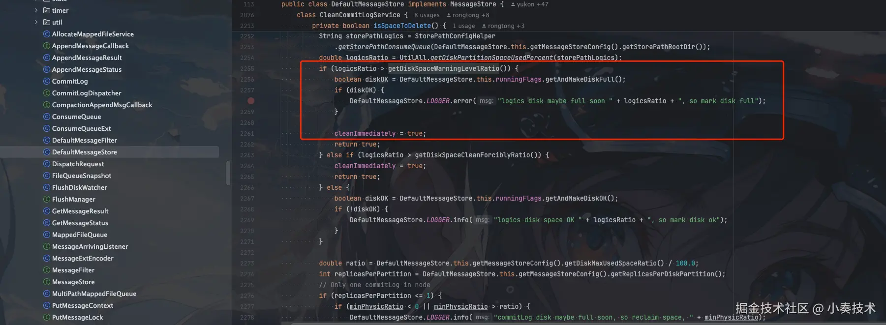 这里可以看到如果超过diskSpaceCleanForciblyRatio,则将commitLog标记为FullStorePath