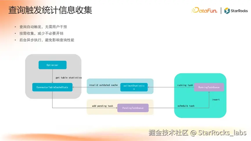查询触发收集,当用户发起查询时,系统自动识别查询涉及的列与分区,异步触发针对性统计任务,仅收集本次查询所需的统计信息。该机制通过后台非阻塞执行,避免对前台查询性能产生影响,同时可显著减少冗余计算开销。