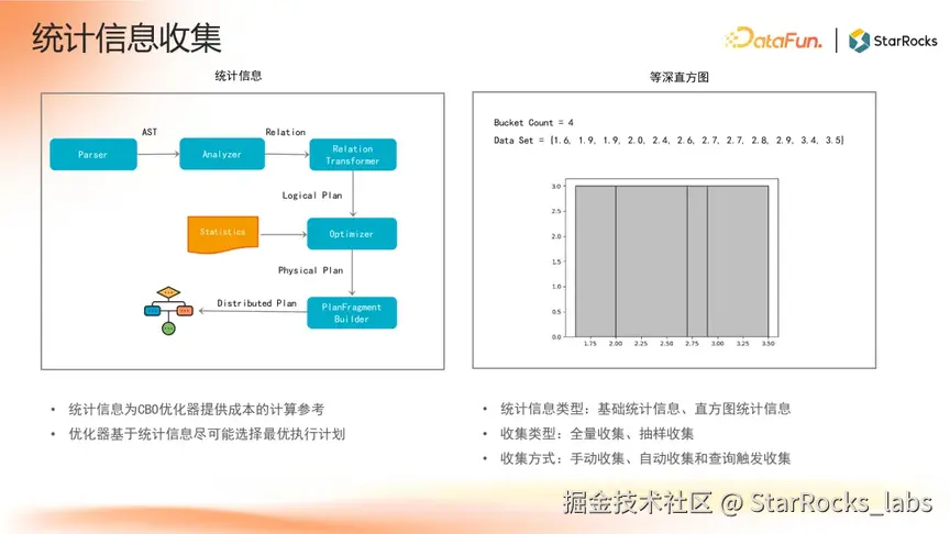 在 StarRocks 的查询流程中,统计信息是 CBO 优化器进行成本估算的核心依据,直接影响执行计划的选择效率。当前 StarRocks 支持两类统计信息: