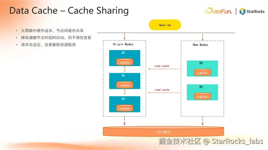 同时,Cache Sharing 机制通过网络实现 BE 集群间的缓存共享,可有效缓解弹性扩缩容期间的性能抖动问题,提升集群整体资源利用率与稳定性。