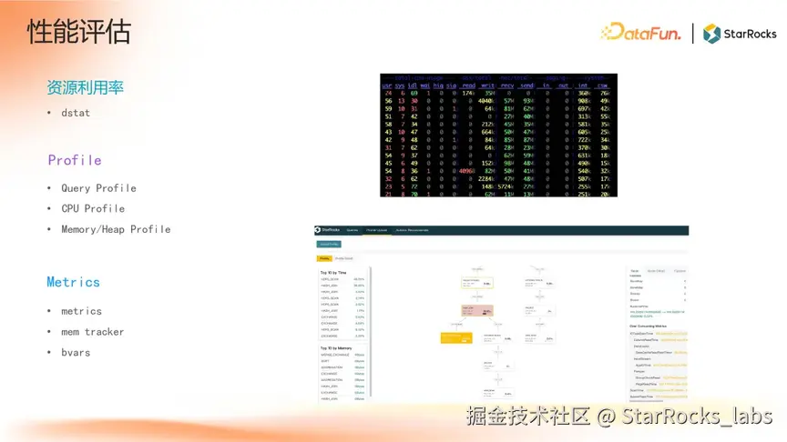 在进行性能调优前,首先需要充分了解当前的性能状况,明确主要瓶颈。可以借助 dstat 等系统工具监控资源利用率,或通过 Profile 和 Metrics 等工具观测集群内部状态,快速定位问题。
