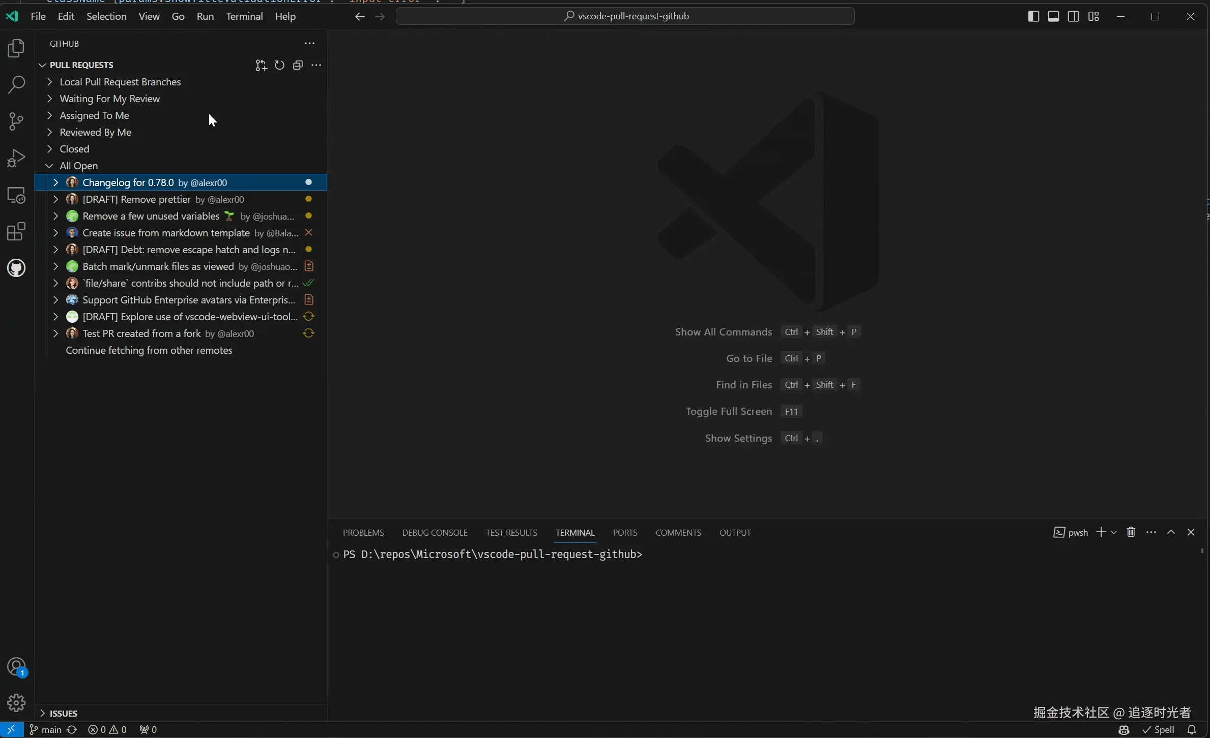 能够直接在 VS Code 中审查和管理您的 GitHub 拉取请求和问题。