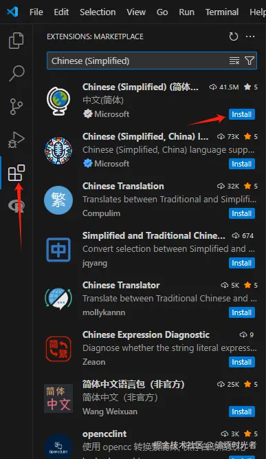 快捷键:Ctrl+Shift+X进入拓展面板,到应用商店文本框中搜索拓展。