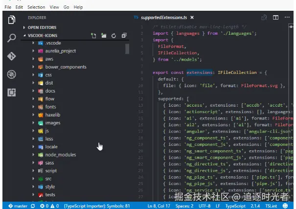 vscode-icons不仅能够给文件夹、文件添加上舒适的图标,而且可以自动检测项目,根据项目不同功能配上不同图标,例如,git、Markdown、配置项、工具类等。