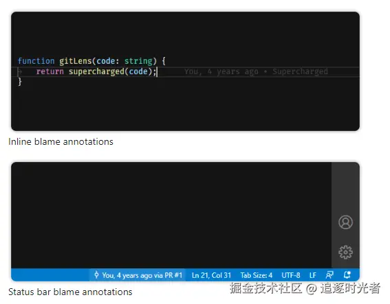 GitLens内置到Visual Studio代码Git的能力。它可以帮助您通过Git责任注释和代码镜头一目了然地看到代码作者的身份,无缝地导航和浏览 Git存储库,通过功能强大的比较命令获得有价值的见解,等等。