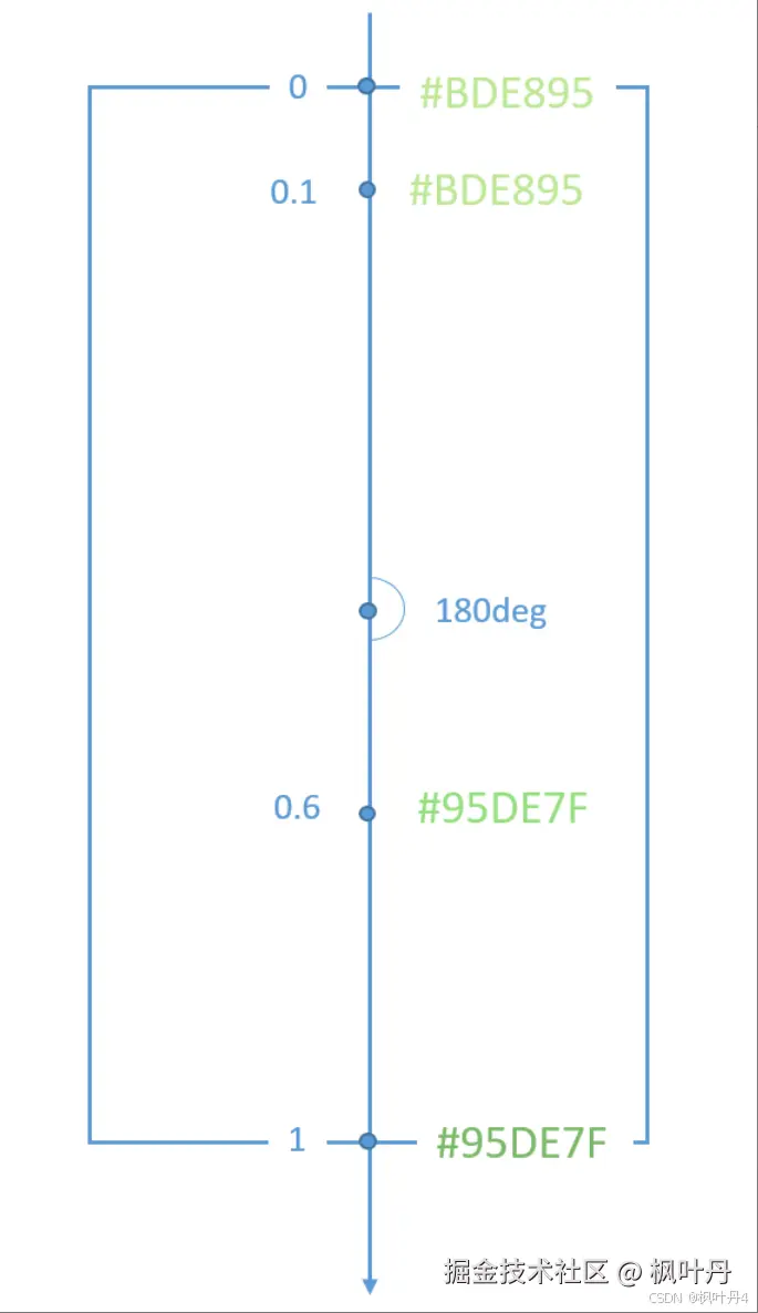 4. 给页面填充渐变色。设置为线性渐变,偏移角度为180deg,三段渐变 #BDE895 -->95DE7F --> #7AB967,其区间分别为[0, 0.1], (0.1, 0.6], (0.6, 1]。