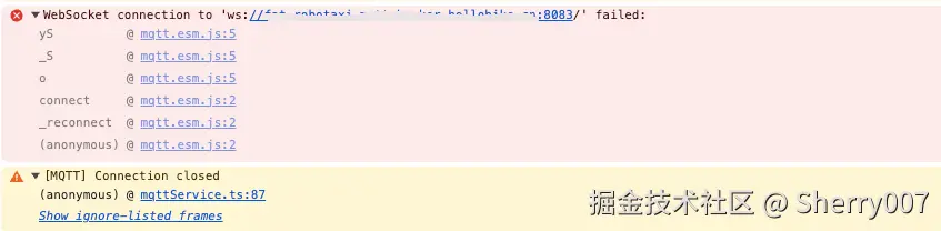 - 如果在浏览器的控制台(console)中查看不到更具体的报错信息,而且前端使用的是 mqtt.js 库,我们可以在项目中添加以下代码,这样可以开启 mqtt.js 的 debug 模式,查看更详细的连接行为。