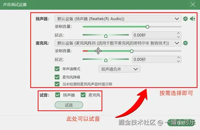 第2步:在 “音频设备名称” 中选择 “立体声混音” 或者 “麦克风” 。