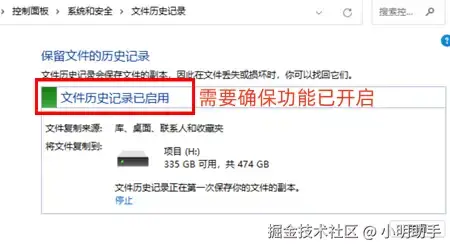 方法五:文件历史记录功能找回回收站恢复文件