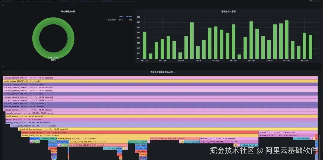 通过 SysOM 进程热点追踪,我们初步评估了 Shell 解释器的运行状态,判断其进入了死循环并重复执行某条异常命令。接着,通过 strace 命令定位到了异常的 Shell 命令,并返回到脚本源码中确认了问题代码的位置。