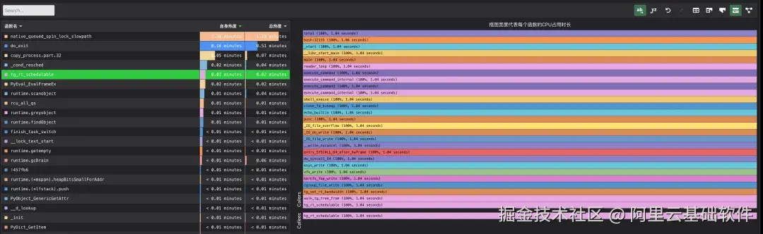 选择 top5,关键来了,我们期待的光秃秃的一根柱子终于出现了,结合内核的 tg_rt_schedulable代码,我们知道该调用栈上是持有了 tasklist_lock read锁的,也就是持有的所有关键调用栈被找到。