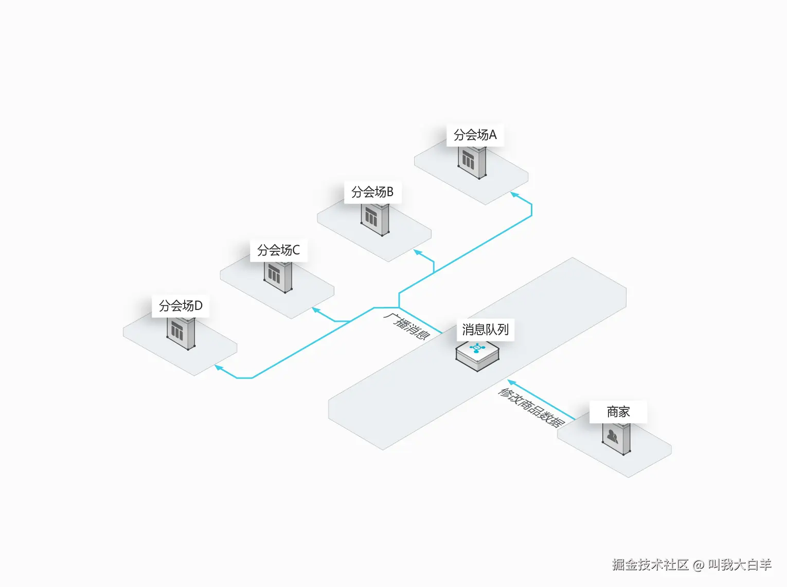 此时需要提供一种广播机制,一条消息本来只可以被集群的一台机器消费,如果使用 RocketMQ 的广播消费模式,那么这条消息会被所有节点消费一次,相当于把价格信息同步到需要的每台机器上,取代缓存的作用。