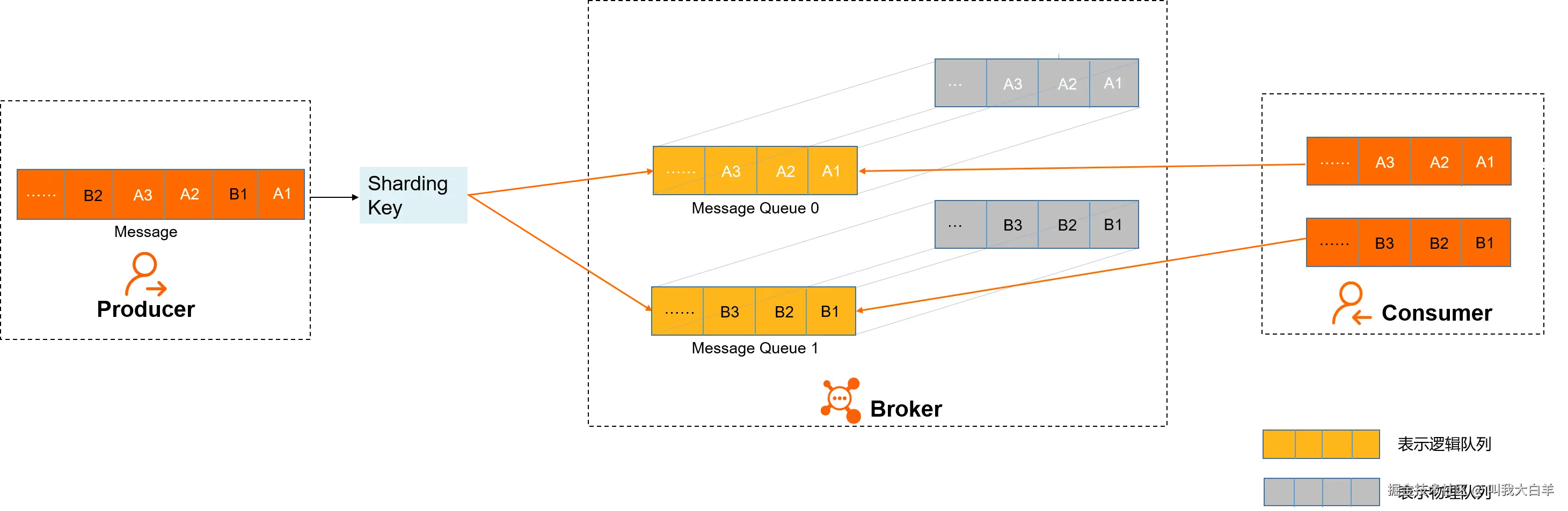 适用场景:适用于性能要求高,以 Sharding Key 作为分区字段,在同一个区块中严格地按照先进先出(FIFO)原则进行消息发布和消费的场景。