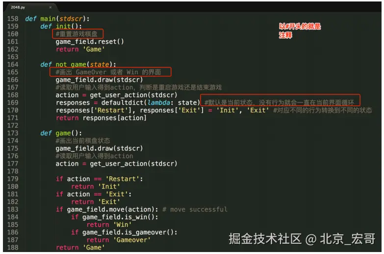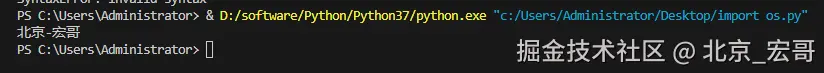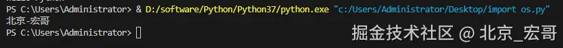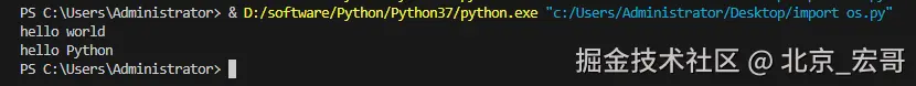 我们可以看到,程序的输出为 hello world 和 hello Python,而并没有输出上面的 Hello 北京-宏哥 。