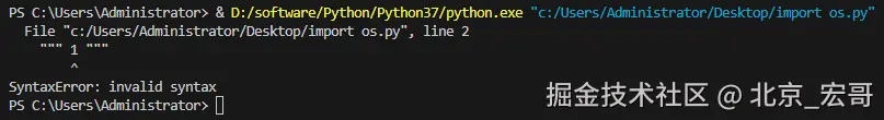 我们在 print 语句中使用了三个单引号的多行注释。多行注释作为语句的一部分出现,就不能再将它们视为多行注释的标记,而是当做字符串标记,因此程序输出了 北京-宏哥。