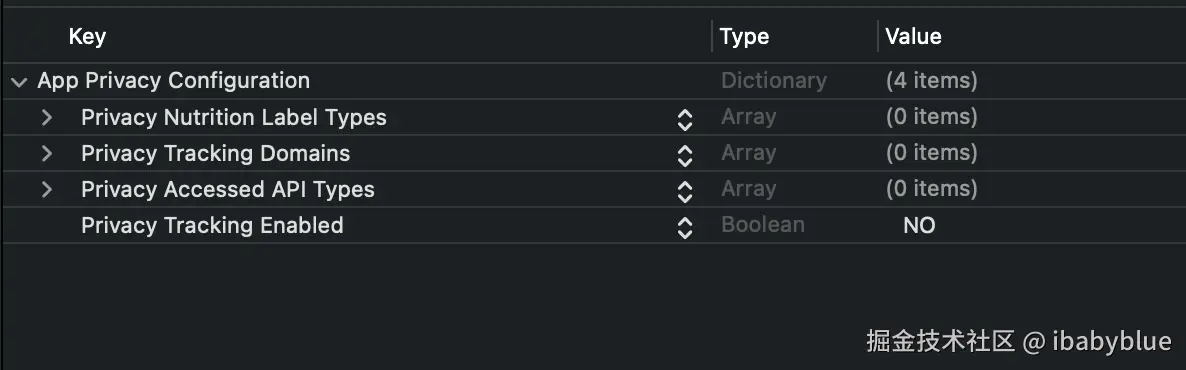 SDK访问的API类型,这些类型已被指定为需要访问原因的API。有关字典中要使用的键和值的信息,请参阅描述:developer.apple.com/documentati… - NSPrivacyAccessedAPIType