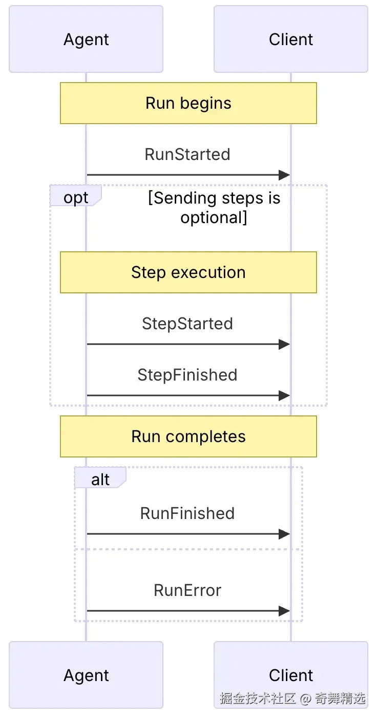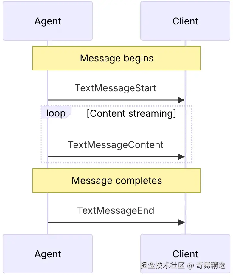 RUN_STARTED,RUN_FINISHED),监控Agent运行进度。 - 文本消息事件(如