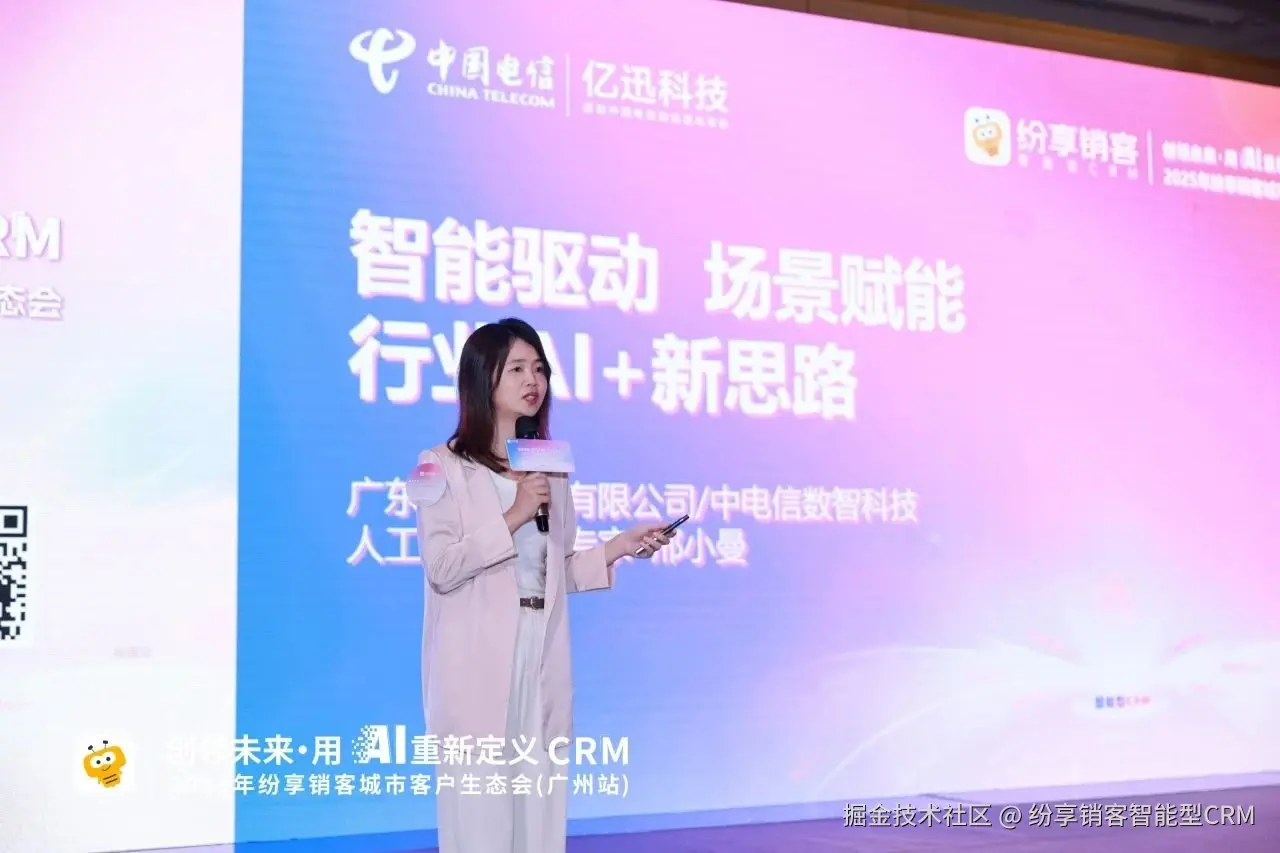 邢小曼: 随着大模型时代的到来,AI 技术在生成能力、自然语言理解和多模态交互等方面取得重大突破。尤其是 DeepSeek 开源大模型的出现,其开源生态显著降低了技术门槛,推动了国产芯片的广泛适配,并大幅压缩了算力成本,加速了 AI 在企业中的普及,促使政府和央国企从最初的谨慎观望转向积极布局和实际应用,例如中国电信的人工智能国家队,打造“算力+数据+模型+平台+应用”五位一体的国家云智算服务体系,加快向智能云全面升级;同时,亿迅科技作为中国电信的全资子公司,正与纷享销客合作探索 AI 在客户情报管理、销售线索跟进、智能应答话术建议等场景中的赋能应用。未来探索的重点在于通过 AI 中台精调大模型、开发训练小模型,进行大小模型编排和场景化适配,才能构建高效的智能体应用。