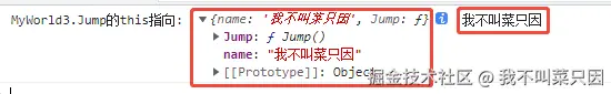 console.log('MyWorld3.Jump的this指向: ', this, this.name)