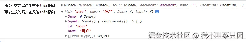 console.log('回调函数为普通函数的this指向: ', this) // 默认绑定到 window,丢失user
