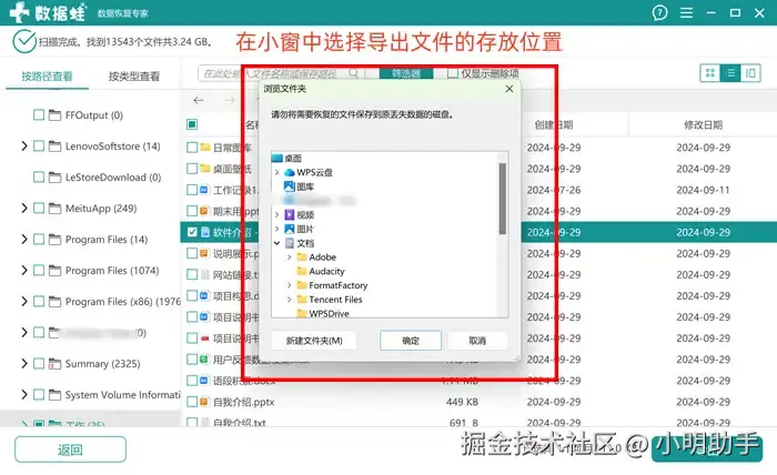 步骤3: 在【浏览文件夹】中选择导出文件的存放位置。