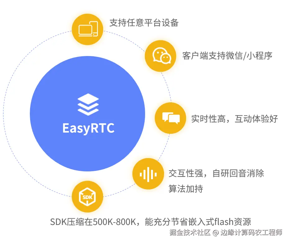 3)跨平台兼容性:EasyRTC具备强大的跨平台兼容性,支持Linux、Android、RTOS等嵌入式系统,以及Web端、移动端、桌面端、微信小程序等各类平台。用户无论使用手机、平板、电脑,通过APP、网页或小程序发起通话,均可实现高清视频连接。