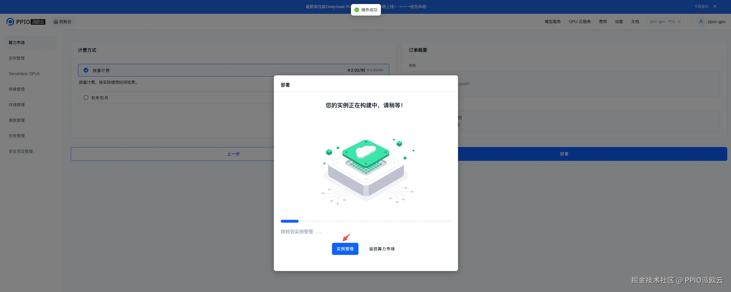 点击实例管理,进入控制台查看部署进度