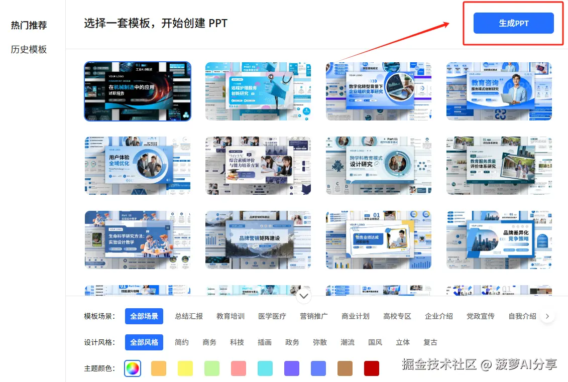 第四步:根据需求选择相应的PPT模板后点击生成PPT静待成果