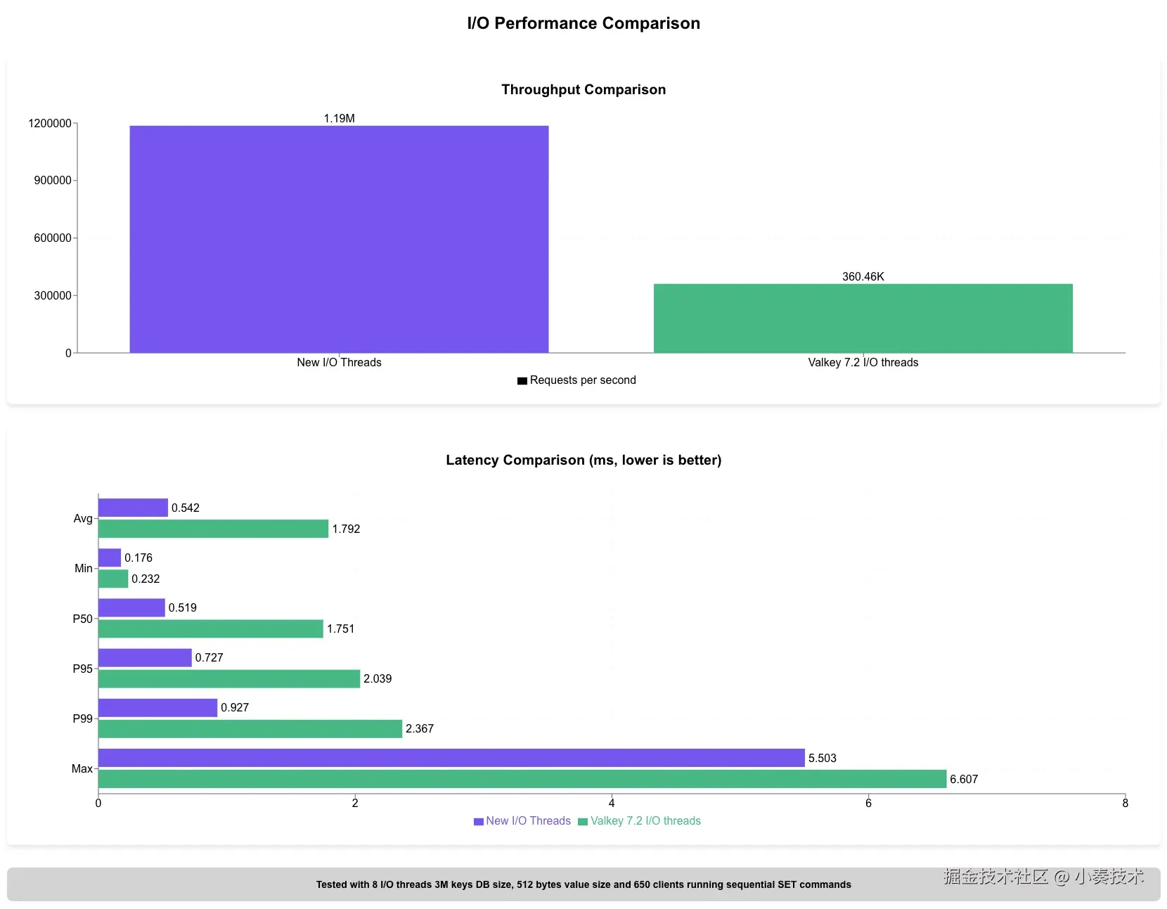 Redis 8.0 通过改进的新 I/O 线程模型解决了这个问题,该模型提供了显著更好的吞吐量: