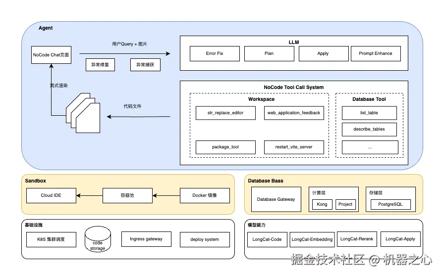 俞超:NoCode 是一个大模型智能体产品,围绕基础设施、runtime sandbox 和大模型构建,多个 AI 模型进行协作。