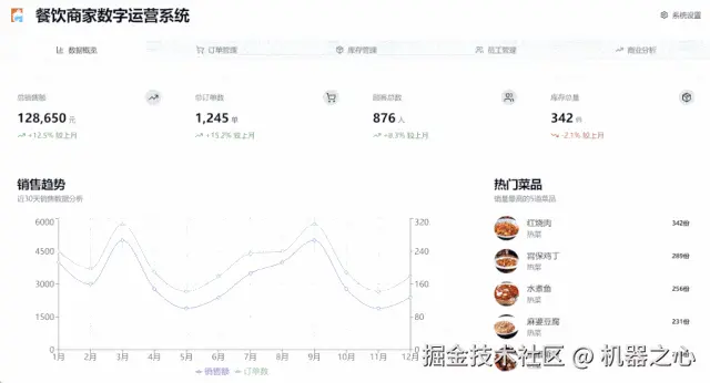 商家数字运营系统,包含运营数据、订单管理、库存和分析等多个项目: