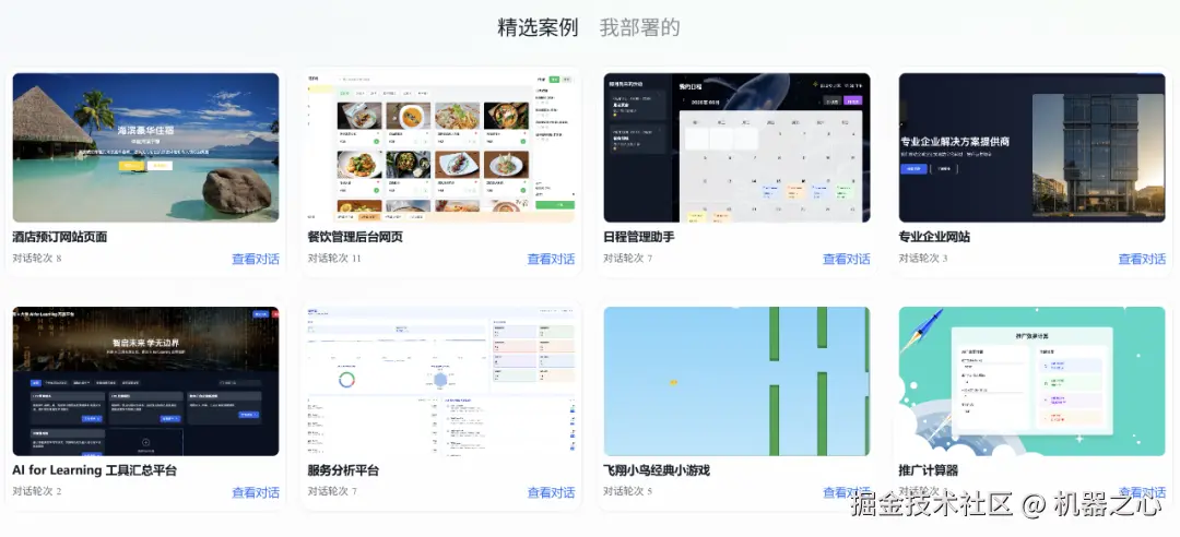 一键部署分享:应用构建完成后,代码将自动上传到仓库,即可立即部署并与其他人分享,点击即可直接访问链接查看作品,同时后方会展示复制按钮,用户也可以选择一键复制链接后,分享给其他人查看。