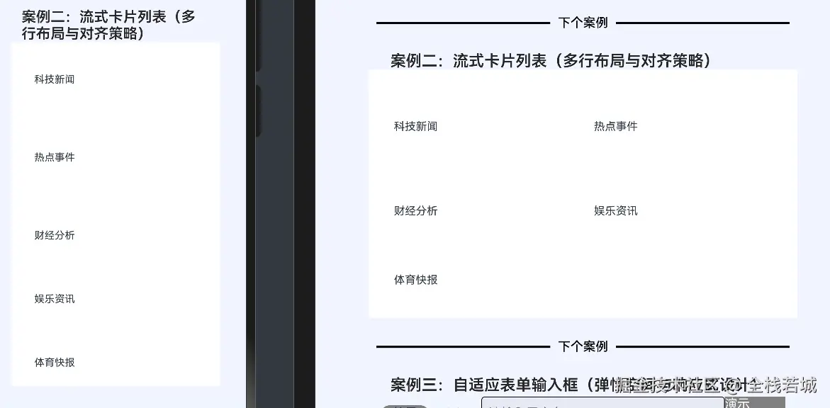 Text("案例二:流式卡片列表(多行布局与对齐策略)")
