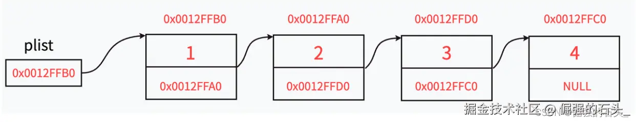这样,每个节点都链接到列表中的下一个节点,形成一个链条。
