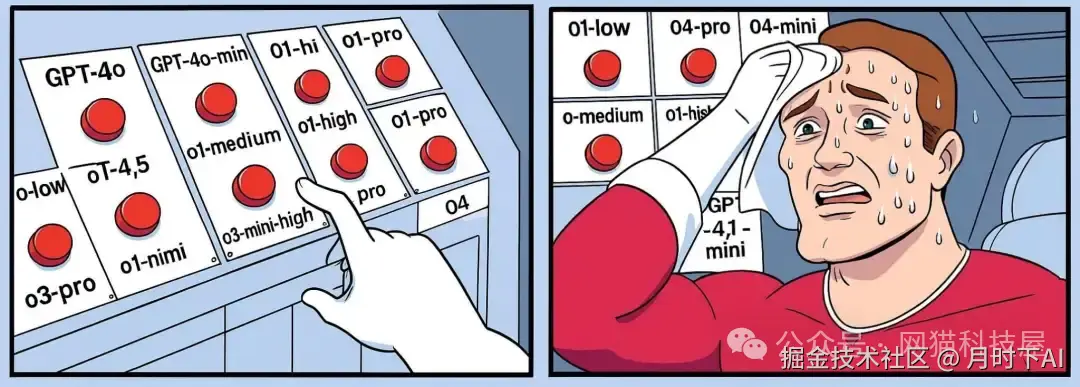 还有些人面对如此繁多的模型,变得手足无措,不知道选哪个模型才能得到最满意的回答,而其中最具代表性的当属ChatGPT,