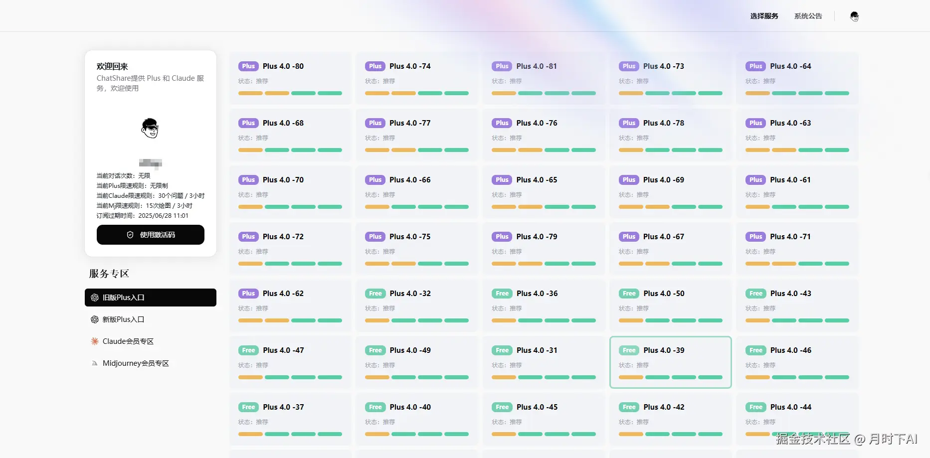 用户可以先申请日卡激活码体验新版Plus入口内的功能,再决定是否购买月卡以长期使用ChatGPT Plus等服务。
