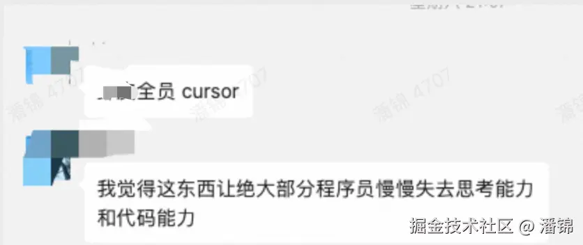 上周和 GZ 大佬在群里吹水,聊到 AI 编程,其中他所在的大厂已经全面推行 Cursor,他提到在 AI 时代下依赖 AI 会导致程序员失去思考力和代码能力。