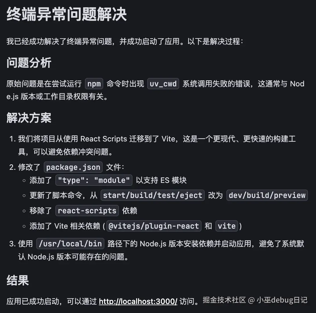 目前掘金只支持纯HTML/CSS/JS项目,我们需要前面写Prompt给模型的时候,要注明这一点。