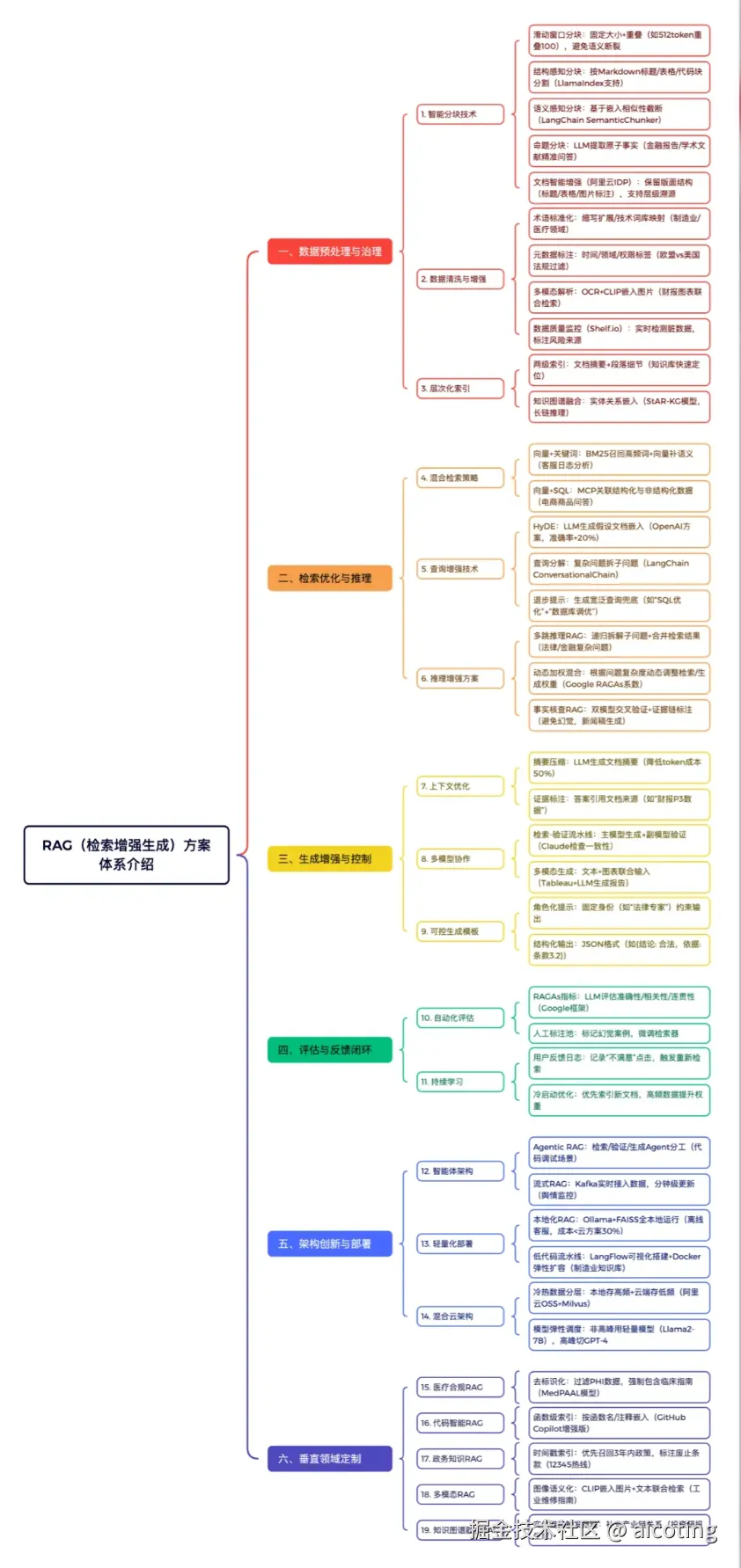 接下来我将深入拆解RAG系统全景图谱,带你了解数据处理、检索增强、生成优化、评估反馈、架构部署到行业应用的全链路流程!