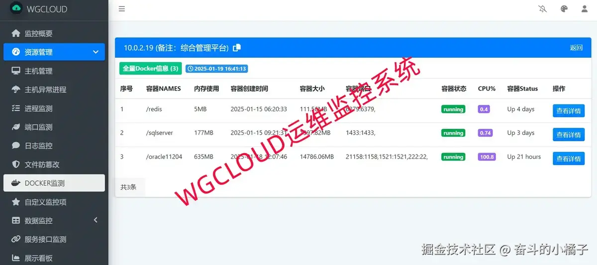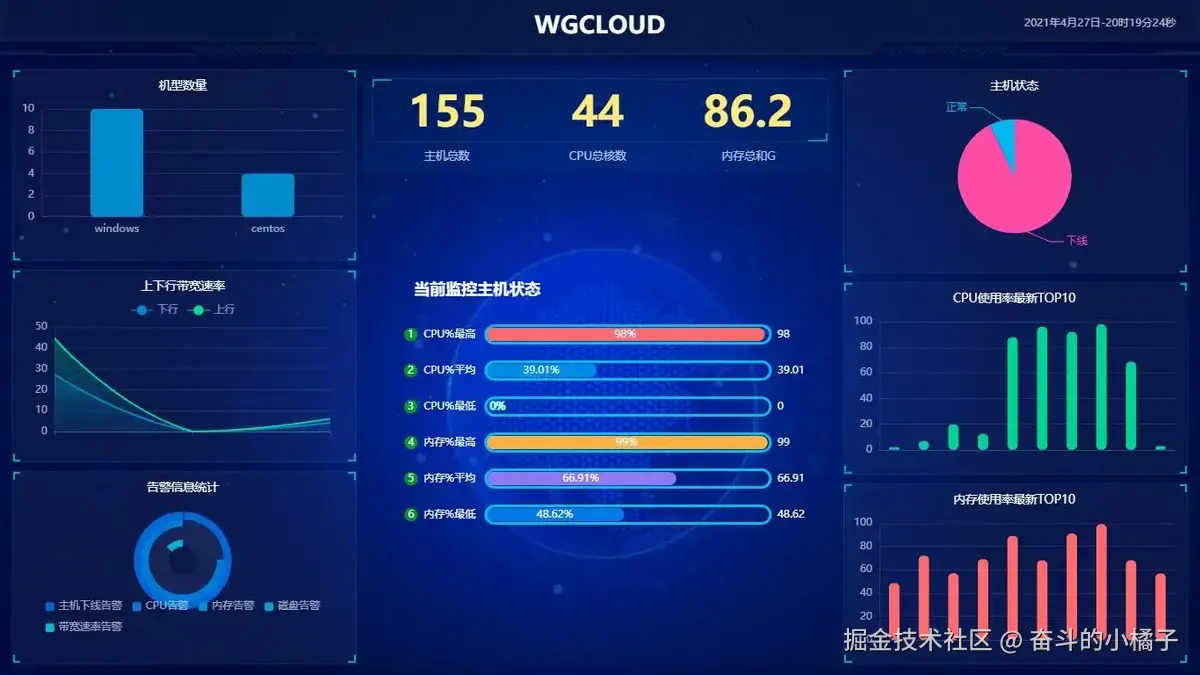 WGCLOUD是一款轻量高效的运维工具,主要用于管理和监测主机的性能运行指标数据,并具有强大的告警能力,也可以监测数据库,文件防篡改,接口,下发指令,计划任务等特性,安装使用简单