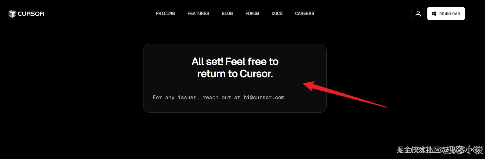 最后提示我们:All set! Feel free to return to Cursor,让我们回到Cursor编辑器