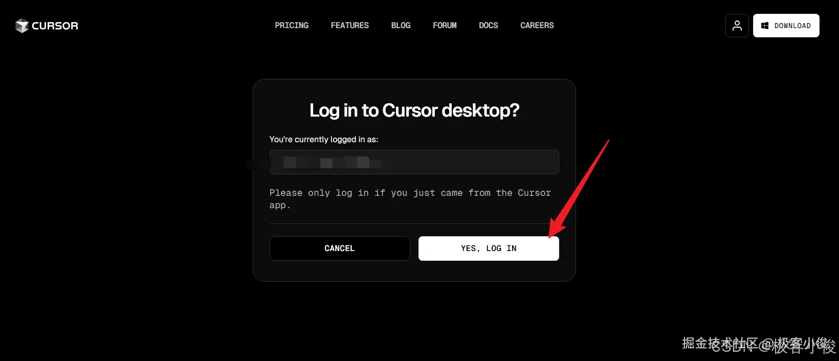 点击Log In后会跳转到web端页面, 点击YES,LOG IN