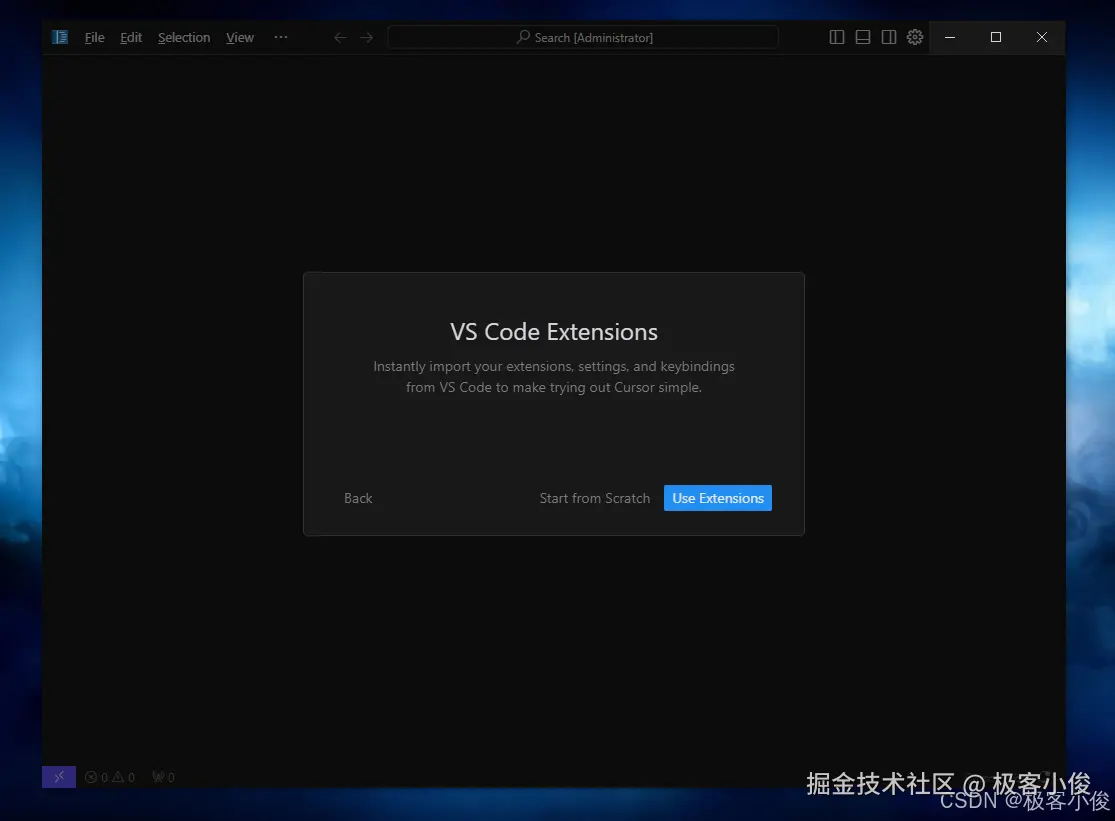 当然如果你不想从 VS Code 导入扩展、设置和快捷键,可以选择 Start from Scratch(从头开始)