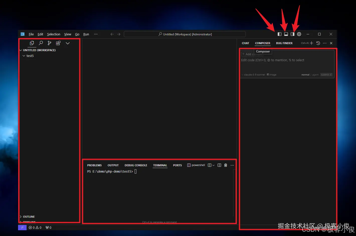 在这里我们主要先看COMPOSER,也可以使用快捷键Ctrl + i快速切换到这里!