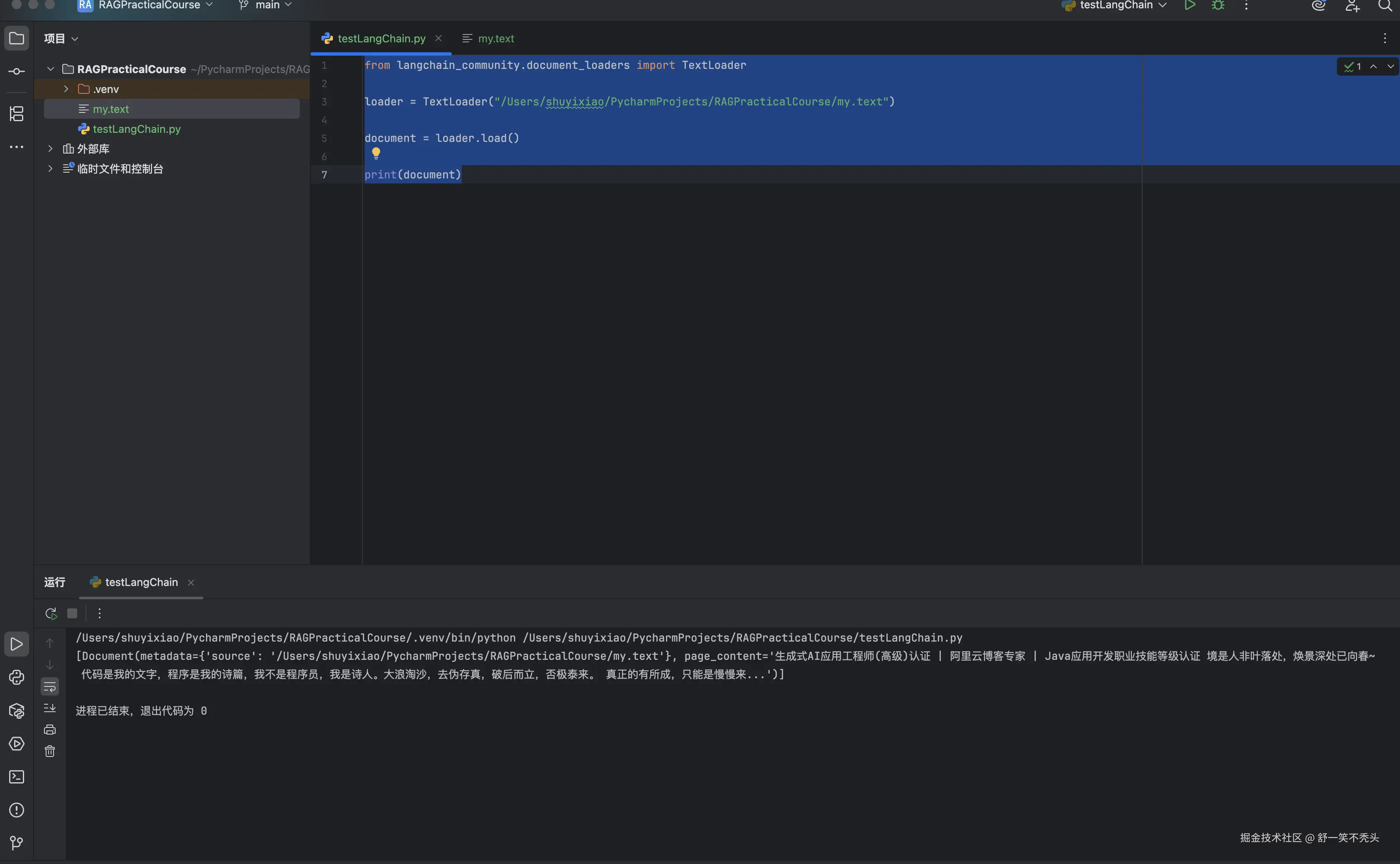 loader = TextLoader("/Users/shuyixiao/PycharmProjects/RAGPracticalCourse/my.text")