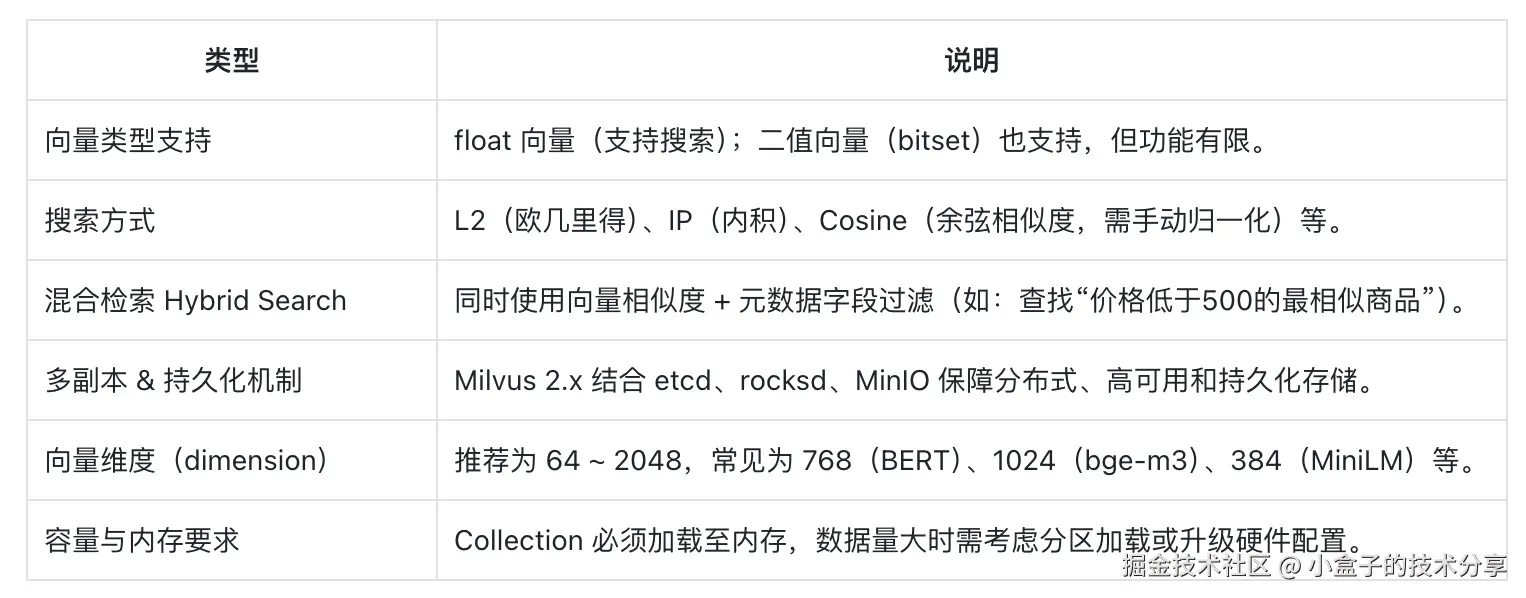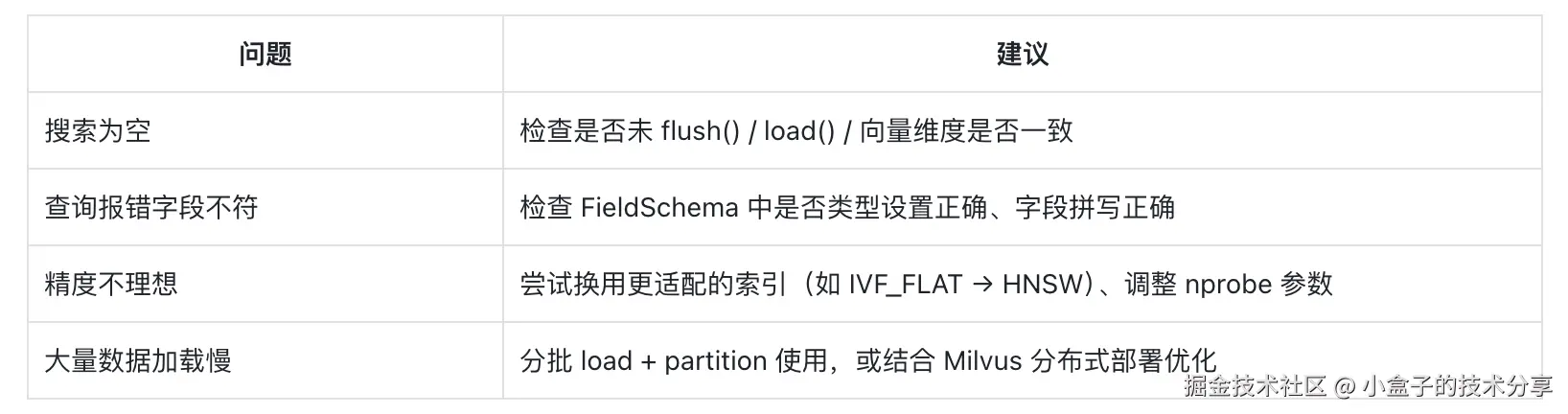 - 多关注向量维度、索引类型和内存管理