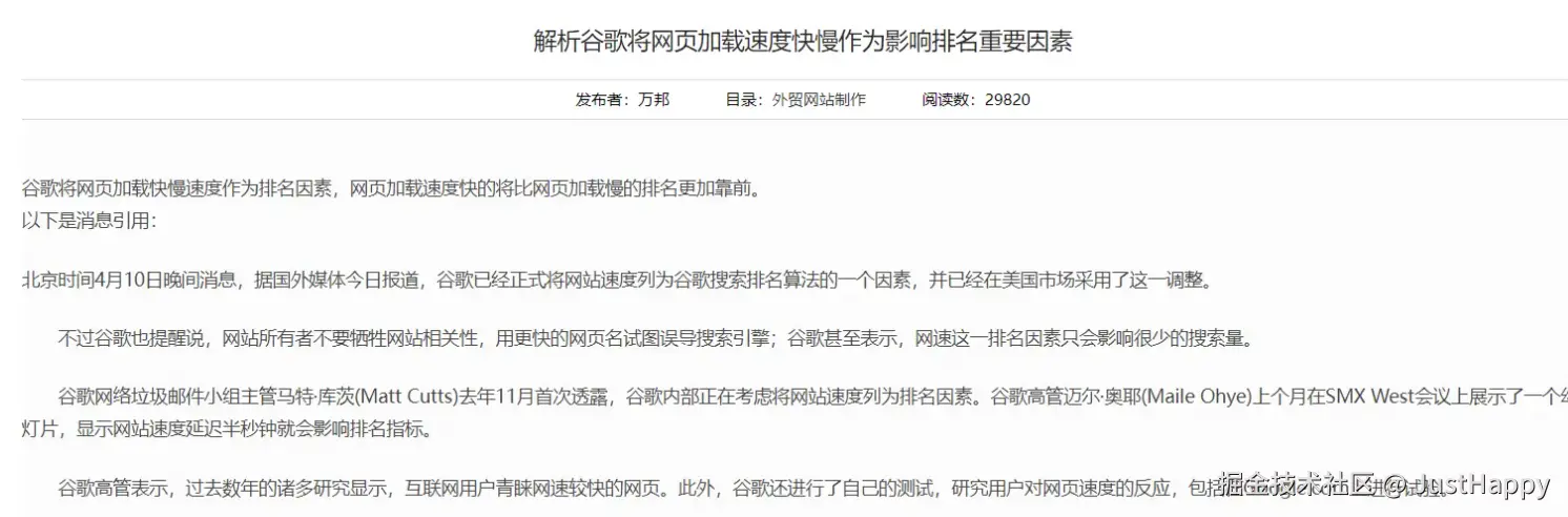 目前谷歌已经将网页加载速度的快慢作为影响排名的重要因素:
