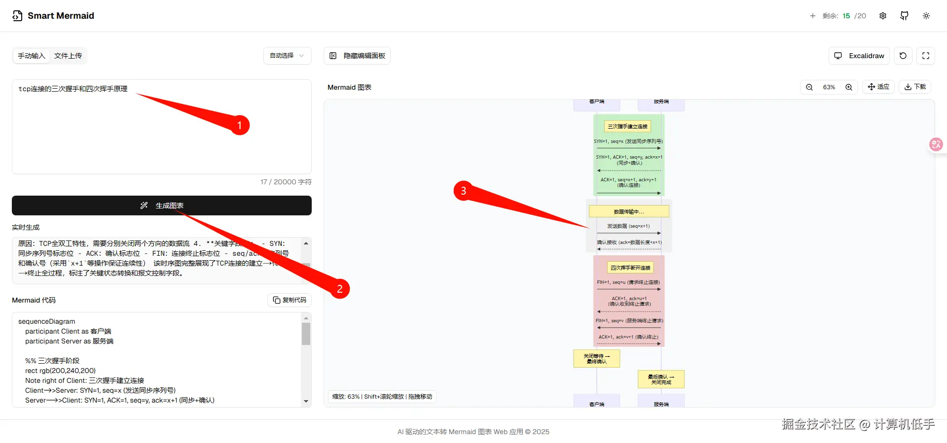 - 一款基于 AI 技术的 Web 应用程序,可将文本内容智能转换为 Mermaid 格式的代码,并将其渲染成可视化图表