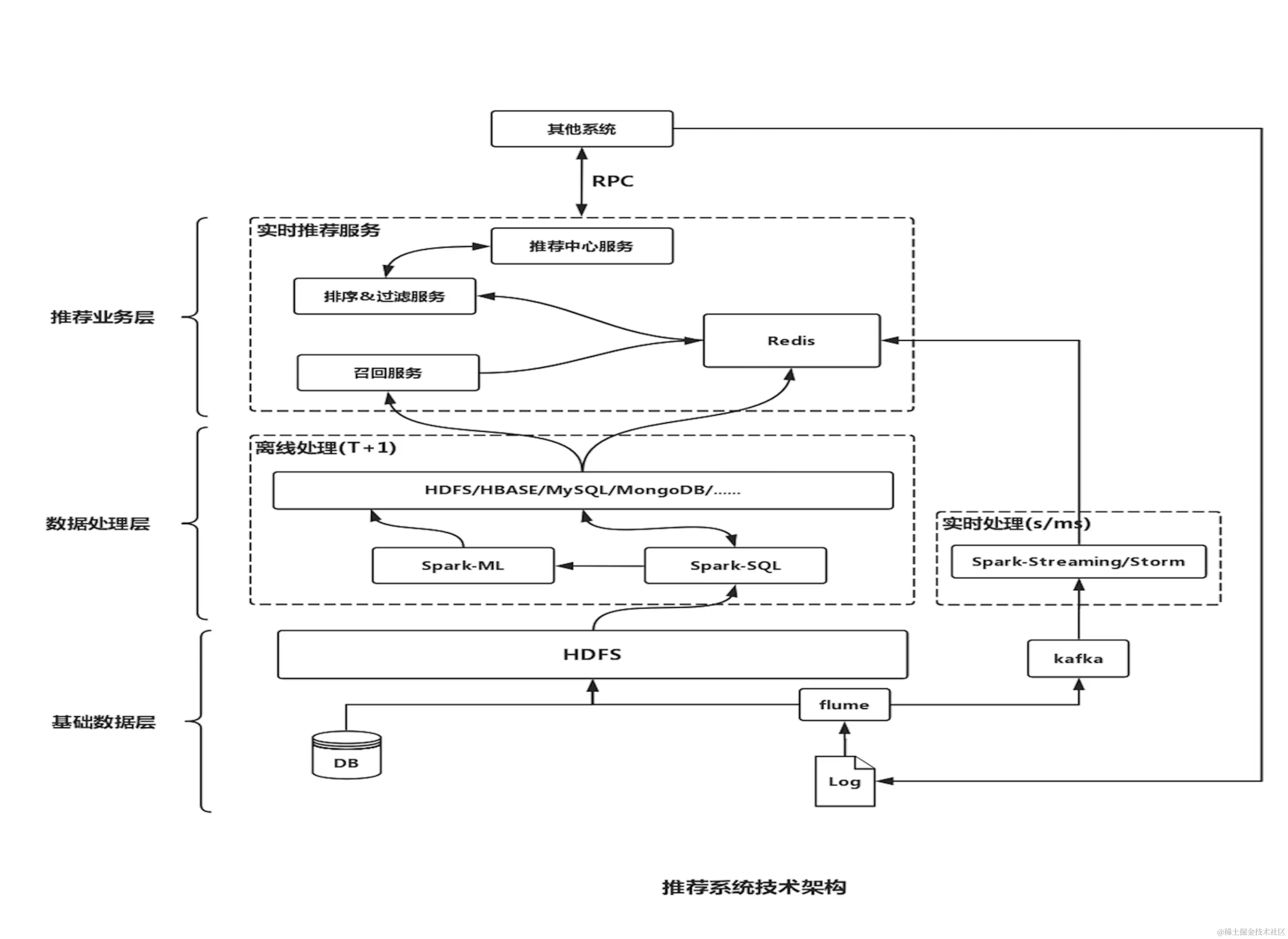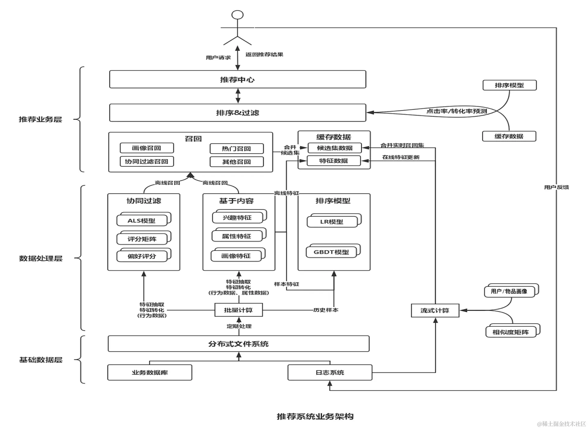 - 召回决定了最终推荐结果的天花板, 排序逼近这个极限, 决定了最终的推荐效果