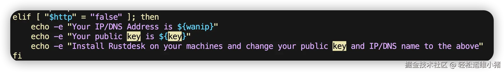 安装成功后会在终端输出你的 rustdesk server IP/DNS 和 public key ,这两个需要配置到 RustDesk Client. 另外如果忘记 public key, 可以在/opt/rustdesk 目录查找以 .pub后缀的文件。